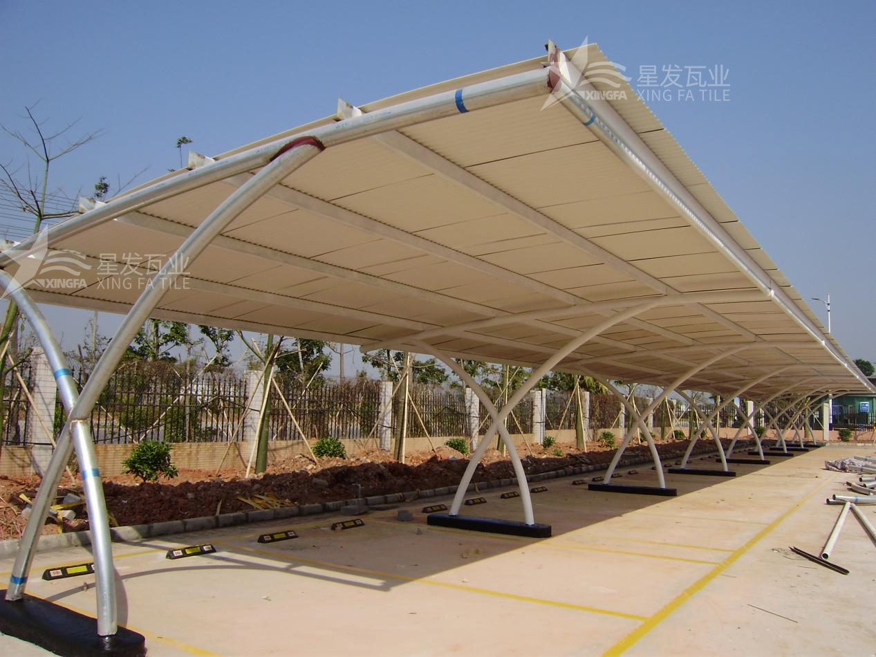 车棚和停车场:由于PVC瓦的安装简便性和防水性能,它们也常用于车棚、停车场和露天停车位的屋顶覆盖。它们能够有效地?;こ盗久馐苋丈?、雨水和其他天气因素的影响。