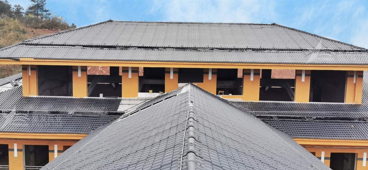 其次,合成树脂瓦的结构设计也有助于提供卓越的隔音效果。瓦片之间的搭接和连接非常紧密,形成一个坚固的整体。这种结构可以有效地阻止声音的传播,减少噪音的穿透。合成树脂瓦的单片面积较大,安装固定简单,只要搭接合理,安装好之后就形成了一个完美的屋面系统,不仅能够提供优异的防水和防风效果,还能有效地隔离外界噪音,为居住者创造一个宁静的居住环境。