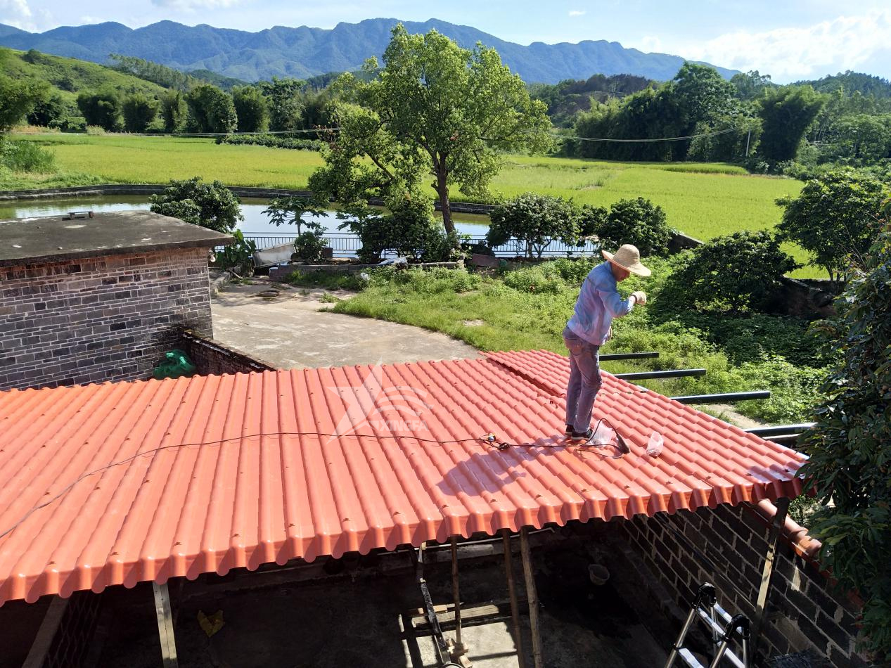 在完成防水层的铺设后,再覆盖保温层和树脂瓦,从而完成整个屋面的防水、保温和瓦板覆盖工作。