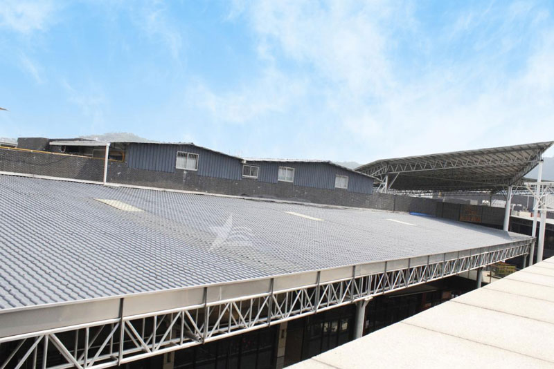 在中国,钢结构+合成树脂瓦的应用也取得了显著的成就。各类屋面建筑,包括住宅小区、自建房、厂房、农贸市场、仓库、凉亭、遮阳棚、雨篷等,都已经普遍采用了这种先进的建筑体系。随着技术和科技的双重发展,越来越多的人认识到这种结构的优势,并开始积极应用“钢结构+合成树脂瓦”方案,使得建筑更加坚固耐用,同时也体现了我国屋面建筑行业的日新月异、扶摇直上。