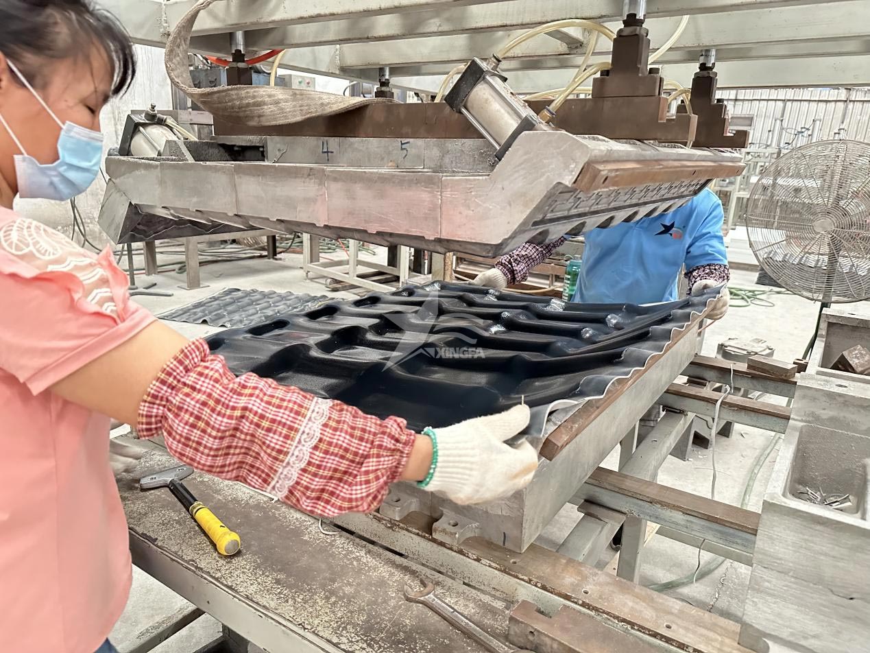5. 压制与固化: 注入树脂后,模具会被放入压制设备中,施加适当的压力,以确保树脂充分填充模具的每一个细节。随后,树脂瓦在恒定的温度下固化一段时间,以确保其获得足够的强度和稳定性。
