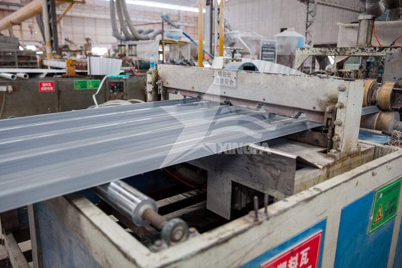 挤出成型后的片材需要经过一系列的后续加工才能成为我们常见的树脂瓦。首先是对挤出成型后的片材进行切割,使其长度符合实际需求。然后,对切割好的片材进行压型,即将其放置在模具上,通过加热和压力使其形成波浪形的表面。这一步的目的是使树脂瓦表面呈现出自然的瓦楞纹理,提高其美观度和抗压性能。压型好的片材进入恒温恒湿的设备中进行固化,使其内部的PVC分子链逐渐交联,从而提高其硬度和强度。