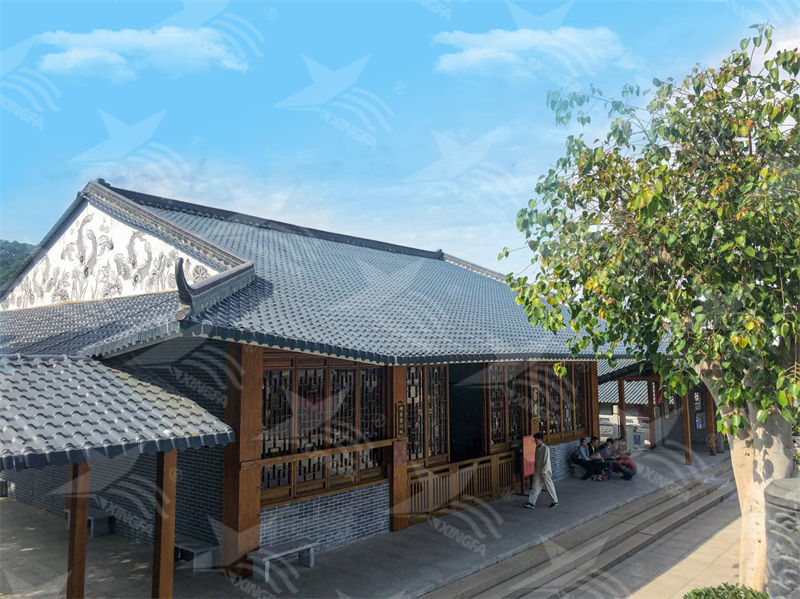 树脂瓦重量轻,易于切割和安装,大大减少了施工时间和人力成本。广泛应用于新农村建设、古建筑修复、屋顶翻新、楼房和厂房等项目中,极大地提高了施工效率。