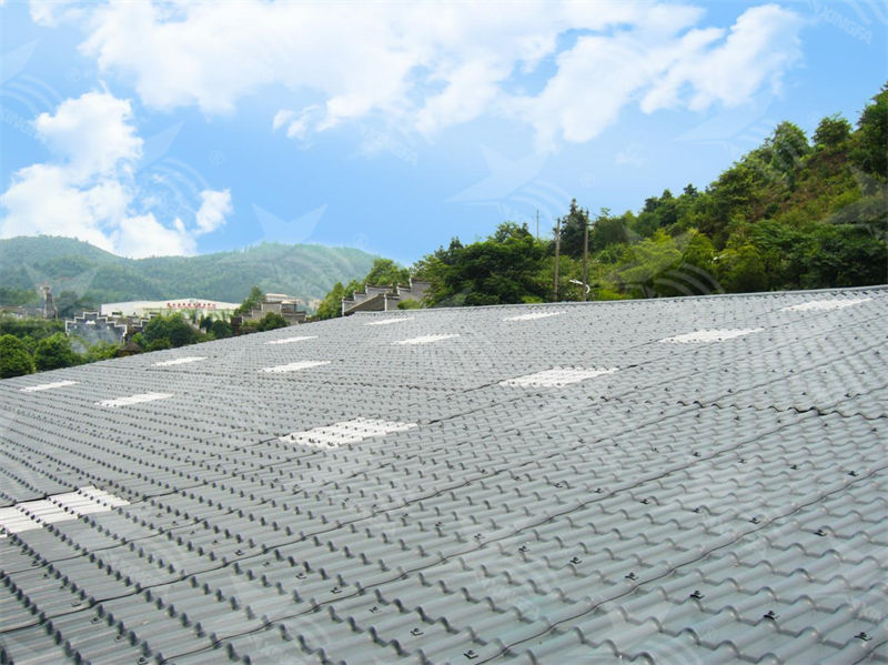 在日益严峻的气候环境下,极端天气现象频发,如台风、冰雹、暴雪、酸雨等,自然灾害对房屋屋顶的考验愈加严峻。作为房屋的第一道防线,屋顶材料的选择至关重要。传统的屋顶瓦片如水泥瓦、陶瓷瓦和彩钢瓦在恶劣天气面前往往显得脆弱,容易破碎或生锈。因此,选用防腐耐候性能优越的合成树脂瓦屋顶材料是保障房屋安全的关键。